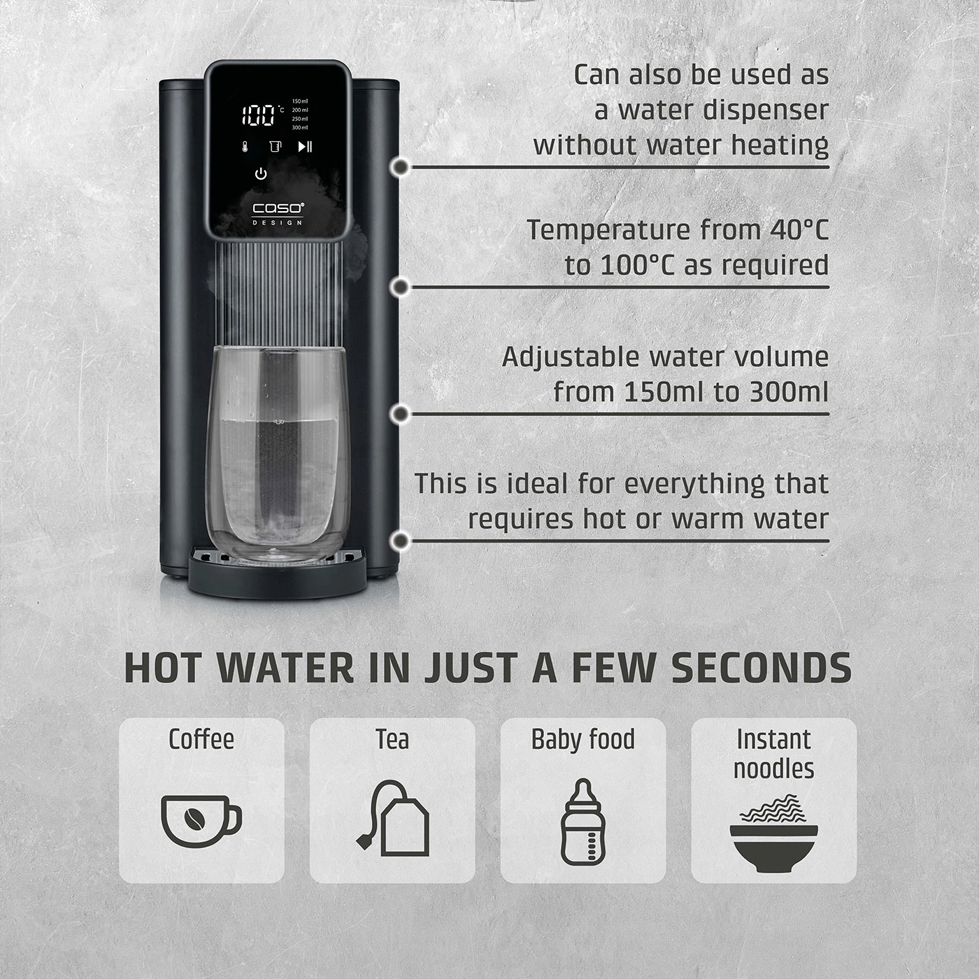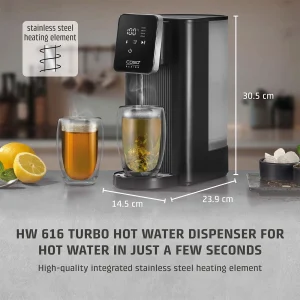 Precise Temperature control om de temperatuur van het water te bedienen met automatische afsluiting, temperatuur controle in 10 °C stappen van 40°C tot 100°C